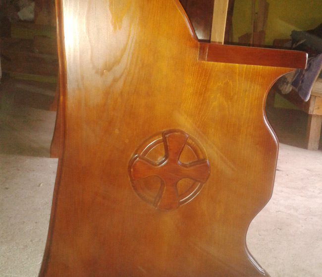 Diseño y fabricación de bancas resplandores, bases de ciriales, sedes sacerdotales , reclinatorios, base de porta, estandartes, urnas mortuorias, esquilas, esculturas, todo ello en madera de pino, ocote y cedro.